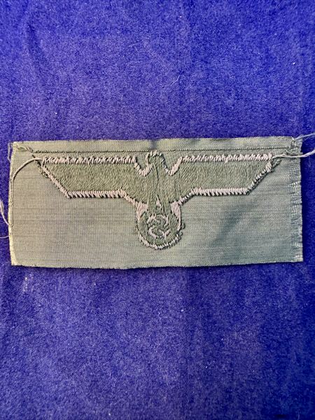 Army bevo Cap Eagle. Grey Eagle over medium green backing. I have 10 of these all in excellent unissued condition. Price is for each.