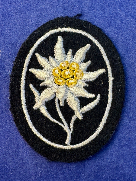 Machine embroidered Sleeve Edelweiss worn by members of the SS Gebirgsjager. Excellent unissued condition.